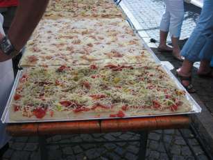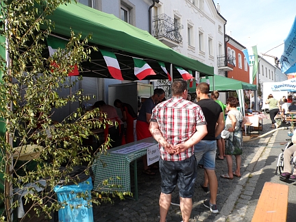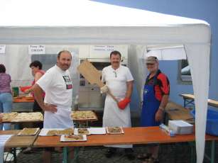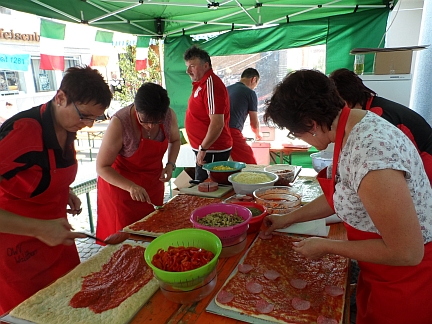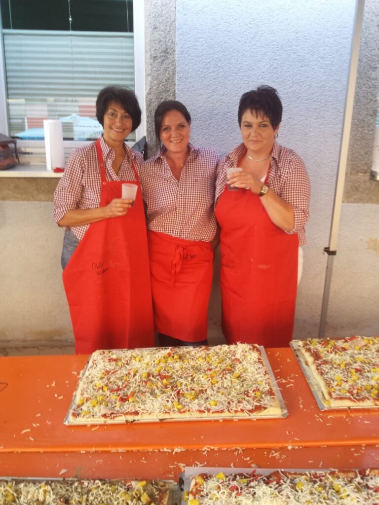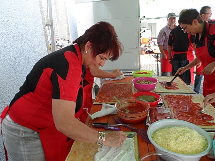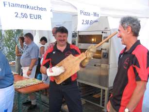 Bei strahlendem Sonnenschein, kamen die vielen, fleißigen Helfer im Pizza-Pavillon schnell ins Schwitzen. Aber die Organisation klappte einwandfrei. Ohne Probleme konnten die Köstlichkeiten zubereitet und verkauft werden. Die hungrigen Gäste kamen vollends auf ihre Kosten und ließen sich die überaus leckeren Pizzaschnitten und würzigen Flammkuchen schmecken.