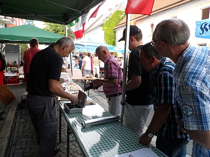 8. Juli 2012 Im Vorfeld des alljährlichen Bürgerfestes in Waldthurn hatte der Oberpfälzer Waldverein sich dazu entschlossen, den bisher durchgeführten Barbetrieb aufzugeben und stattdessen das kulinarische Angebot zu bereichern. Die Organisatoren entschieden sich dazu, Pizza und Flammkuchen vorzubereiten und anzubieten. Im aufgebauten Pavillon in der unteren Hälfte des Marktplatzes ging es geschäftig zur Sache aber die Besetzung beider Schichten organisierte die Zubereitung und den Verkauf perfekt. Somit konnte die Wartezeit der hungrigen Gäste auf ein Minimum reduziert werden und jeder kam auf seine kulinarischen Kosten. Der Erlös des Verkaufs geht an die Waldthurner Vereinsgemeinschaft.