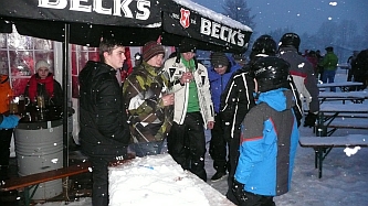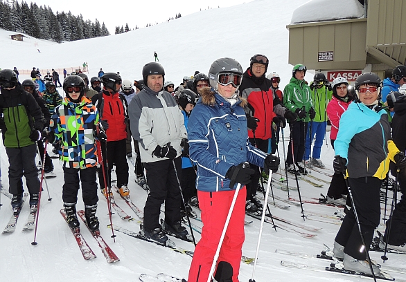 Die Gruppe verstreute sich im weitläufigen Skigebiet und erkundete die gut präparierten Pisten. Der eine oder andere genoss die urgemütliche Stimmung in den vielen Hütten und Gasthäusern zur Stärkung. Nicht zu glauben, dass im Laufe des Nachmittags das Wetter schlagartig umschlug und starker Schneefall einsetzte. Zu diesem Zeitpunkt waren die Skifahrerwadeln aber bei vielen schon geschwächt, was bei den meisten zu einem Einkehrschwung bzw. Besuch in einer Apre Ski Bar führte. Etwas müde, aber dennoch guter Stimmung machte man sich auf den Heimweg