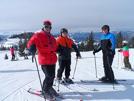 Gut eingestimmt durch die musikalische Unterhaltung von Jonas Kraus, Julian Bauer und Andreas Holfelner im Bus machte man sich in Scheffau in eines der größten Skigebiete Österreichs auf. Am Brandstadel angekommen präsentierte sich das Massiv des Wilden Kaisers unter blauem Himmel und bei herrlichstem Sonnenschein.