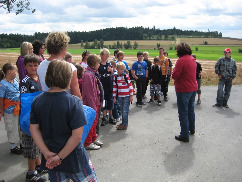 Auch in diesem Jahr nahm der OWV Waldthurn wieder am Ferienprogramm der Marktgemeinde Waldthurn teil. Knapp 30 Kinder versammelten sich bei der Bienenweide neben der Werkstatt von Schreinermeister Alois Bäumler. Der Hobbyimker erklärte den Teilnehmern die Wichtigkeit der kleinen Fluginsekten und wies darauf hin, dass neben der Produktion von Bienenhonig und -wachs vor allem der Erhalt unserer schönen Natür am Fortbestand der Bienenvölker hänge. Er zeigte den Kindern sogar eine Bienenkönigin, die pro Tag bis zu 2.000 Eier legen könne, was mehr als ihr eigenes Körpergewicht bedeute. Nach dem Vortrag machte sich die Gruppe mit den Begleitern Andrea Götz, Hannah Reil, Annika Pankotsch, Sieghard Reber, Hans-Jürgen Bergler, Roman Bauer und Werner Pankotsch auf zu einer Wanderung nach Obertresenfeld. Auf halber Strecke las Andrea Götz den Kindern eine Geschichte von einem Eichhörnchen vor, das vor dem Winter noch seine Nüsse als Wintervorrat verstecken müsse. Sie forderte die Kinder auf, ähnlich wie das Eichhörnchen, vorher markierte Wallnüsse im Wald an verschiedenen Stellen zu verstecken, um sie dann später wieder zu finden. Nach einem weiteren Teil der Geschichte mussten die Kinder ihre Nüsse wieder suchen, was die meisten erfolgreich erledigten. Aus dem Rest der Nüsse würden laut Andrea Götz wohl neue Nussbäume im Wald wachsen.