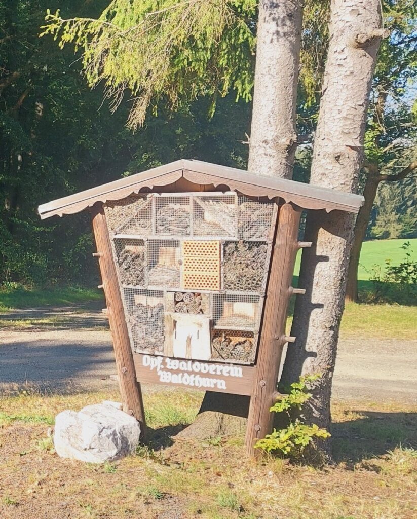 Zum diesjährigen Ferienprogramm des Oberpfälzer Waldvereins hatte Organisator Hans-Peter Reil eingeladen, ein Insektenhotel mitzubauen. Ca. 50 Kinder und auch einige Eltern konnten bei der vereinseigenen Skihütte begrüßt werden. In zwei Gruppen aufgeteilt gingen die Kinder frisch ans Werk. Hans Pflaum hatte mit seinem Sohn Mario ganze Arbeit bei der Vorbereitung geleistet und die Kinder konnten bei der Bestückung des Insektenhotels aktiv mitarbeiten. Begeistert sammelten Sie die benötigten Materialien und halfen beim Gestalten kräftig mit.