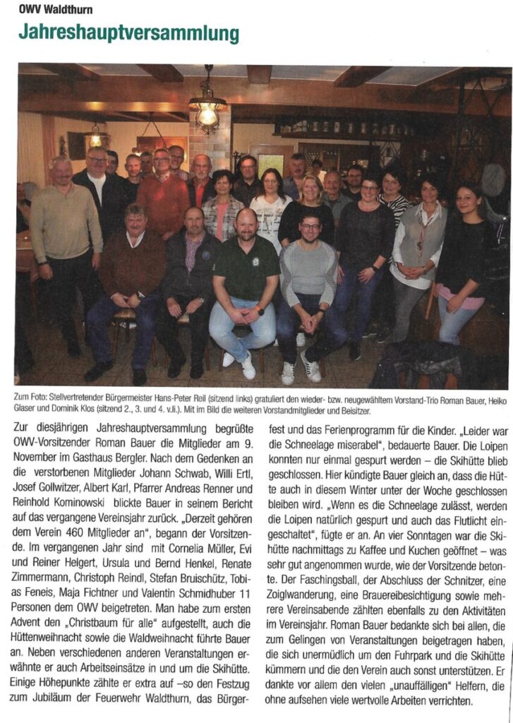 Am Sonntag, 17. März 2019 besuchte der Regensburger Bischof Rudolf Voderholzer die Pfarr- und Marktgemeinde Waldthurn. Nach dem Pontifikalgottesdienst in der voll besetzten Pfarrkirche St. Sebastian marschierte der Bischof, angeführt von der Trachtenkapelle Waldthurn, ins Pfarrheim zum Eintrag ins Goldene Buch der Marktgemeinde. Kirchenpfleger Max Kick und Bürgermeister Josef Beimler begrüßten in launigen Worten das Kirchenoberhaupt aus Regensburg. Nach dem gemeinsamen Mittagessen stattete der Bischof dem OWV- und Heimatmuseum einen Besuch ab. Die Vorsitzenden Petra Reil und Roman Bauer erklärten die Ausstellungsstücke und Unikate, die verschiedenen Krippen und den originalgetreuen Nachbau des Rosenkranzweges zum Fahrenberg mit der Wallfahrtskirche Maria Heimsuchung. Spontan erzählte der Bischof von seiner eigenen kleinen Krippenausstellung in Regensburg und freute sich, dass hier Traditionen gepflegt werden. Ebenso groß war die Freude, als der Bischof zum Gegenbesuch nach Regensburg einlud, was seitens des OWV gerne angenommen wurde.