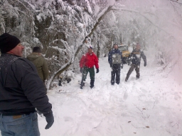 2012 Unter dem Motto „Der nächste Winter kommt bestimmt“ packte der OWV Arbeitsdienst wieder einmal gemeinsam an, um die Loipe winterfertig zu machen. Die besondere Herausforderung in diesem Jahr war und ist die Vorbereitung der Strecken auf den Einsatz der neu angeschafften Pistenraupe. Damit war klar, der Streckenverlauf muss etwas breiter werden. Außerdem war es nötig, die Flutlichtmasten der Nachtloipe frei zu sägen, da diese in den letzten Jahren zugewachsen waren. 13 Helfer waren bereit, ihre Freizeit zu opfern und mit anzupacken.