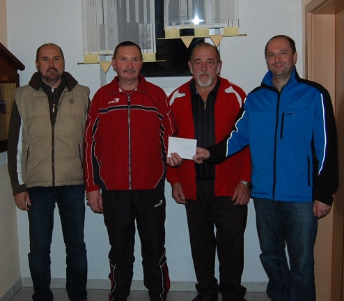 Werner Pankotsch und Roman Bauer haben an den Vorstand des FSV, Max Bergler und seinen Jugendleiter, Lothar Schön eine Spende übergeben. Es soll ein kleines Danke sein für die kostenlose Überlassung des Sportheims und der Duschen beim Landkreislauf. Der Betrag soll für die Jugendarbeit des FSV verwendet werden