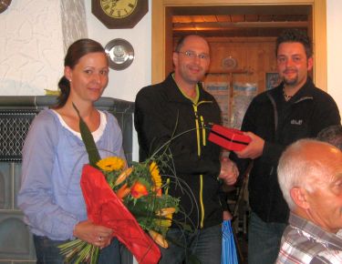 Am 23. Juli 2011 feierte unser Ausschussmitglied und Mitverantwortlicher für die Loipenpräparierung das 10. jährige Jubiläum seiner Heizungsbaufirma. Er hatte die Mitglieder der Ausschüsse des OWV und des Skiclubs darum gebeten, die Bewirtung incl. Grillen und Ausschank zu übernehmen, was für alle selbstverständlich war. Nach Abschluss des Jubiläums blieb ein Überschuss von 1.120 Euro, der von Heiko Daubenmerkl kurzerhand auf 1.200 erhöht und als Spende für die Anschaffung eines neuen Pistenspurgerätes an den Skiclub übergeben wurde. Im Rahmen einer gemeinsamen Ausschusssitzung am 15. September erfolgte die Übergabe der Spende von Steffi und Heiko Daubenmerkl an den Spartenleiter des Skiclubs, der sich mit einem Blumenstrauß und einer Flasche Wein herzlich für die Unterstützung bedankte.