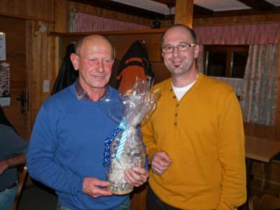 Ludwig Kleber – der Vein Luk – (links) wirkte Jahrzehnte in der Führungsriege des Vereins und schied jetzt aus der Vorstandschaft auf eigenen Wunsch aus. Vorsitzender Werner Pankotsch dankte dem unermüdlichen Mitarbeiter mit einem bayerischen Krug. Kleber versprach weiterhin mit Rat und Tat seinem Skiclub beizustehen