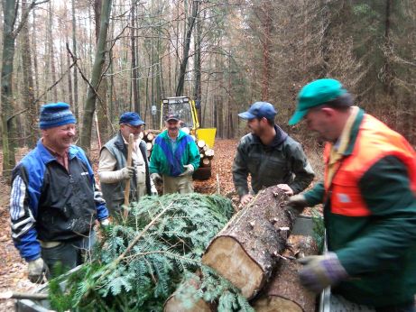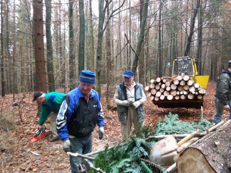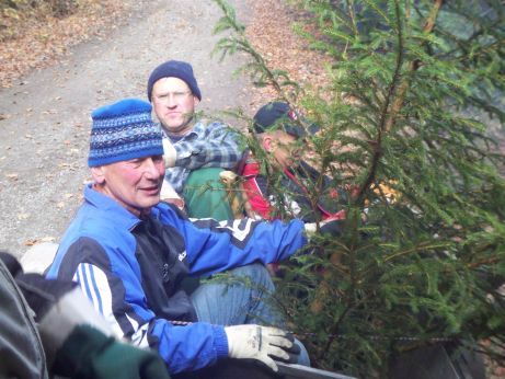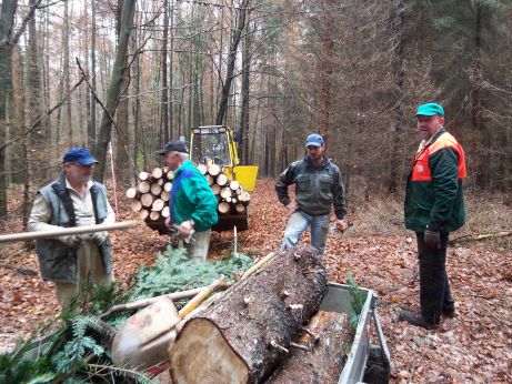 Parallel zu den Waldarbeiten machten sich die restlichen OWV Arbeiter daran, die Flutlichtmasten frei zu sägen. Nicht nur Äste waren dabei zu entfernen sondern auch eine stämmige Pappel wurde gefällt. Gute Teamarbeit war der Grund dafür, dass die Arbeiten rasch durchgeführt werden konnten. Josef Pflaum war zusammen mit seinem Sohn und seinem Taktor angerückt, um das Brennholz zur Skihütte zu transportieren.