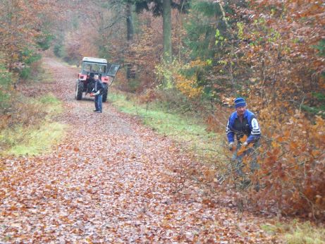 Die beiden Verantwortlichen Ludwig Kleber und Konrad Seibert hatten im Vorfeld mehrfach die Wege begutachtet und die Engstellen ausgemacht. Das Präparieren der Wege in Handarbeit schied aufgrund des Umfangs der notwendigen Maßnahmen aus. Konrad Seibert hatte einen Waldwegemulcher organisiert, der an einen PS starken Traktor montiert, alle Wege perfekt präparierte. Der erfahrene Maschinenführer wurde von den Verantwortlichen eingewiesen, und am Ende der Maßnahme konnte ein zufriedenstellendes Ergebnis begutachtet werden.