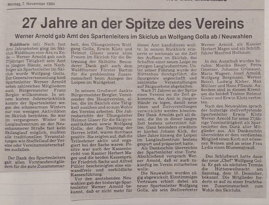 1994 Werner Arnold gibt Amt in jüngere Hände