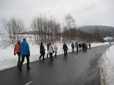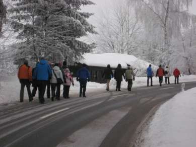 Am Sonntag, 02.11.2011 um 13.30 Uhr wanderten zahlreiche OWV-Mitglieder von Waldthurn über die Skihütte nach Neuenhammer. Werner Pankotsch organisierte die Wanderung. Wegen der massiven Schneeverhältnisse musste der Weg über die Staatsstraße gewählt werden. Ein Marsch durch den verschneiten Wald wäre zu beschwerlich, insbesondere für die teilnehmenden Kinder, gewesen. Im Gasthaus Mauerer (Hammerwirt) empfing der Georgenberger Bürgermeister Johann Maurer die Gruppe. Nach einer Stärkung mit Kaffee und selbstgebackenen Kuchen, gestiftet von Evi Reil und Martina Pankotsch, machten sich die OWV´ler auf den Rückweg nach Waldthurn. Natürlich durfte ein Einkehrschwung in der Skihütte bei Hüttenwirt Konrad Seibert nicht fehlen. Bei dunkler Nacht ging es dann flotten Schrittes zurück nach Waldthurn